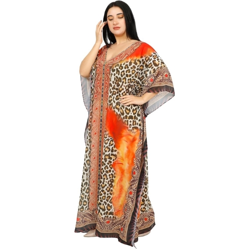 Ethnic Print Georgette Fabric Kaftan Dresses For Women Beach Dress Plus Size Swimsuit Cover Up