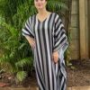 • Stylish Design: The Stripe Print Tie Dye V-Neck Kaftan is a must-have for your summer wardrobe. It features a beautiful design with a combination of stripes and tie-dye that is sure to turn heads.
